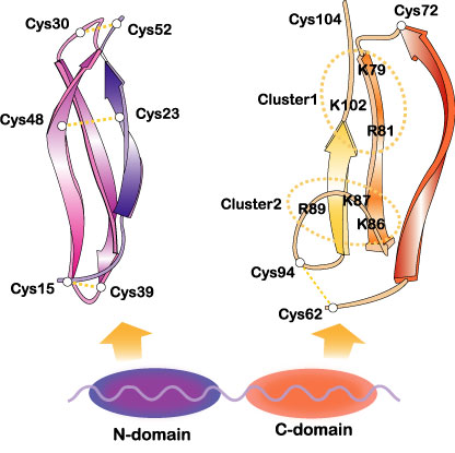 heparin-binding sites in the C-domain are encircled. Cited from Muramatsu, T.,