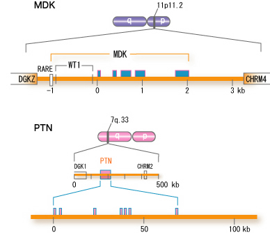 human midkine gene (MDK). For comparison, the human pleiotrophin gene (PTN) is
