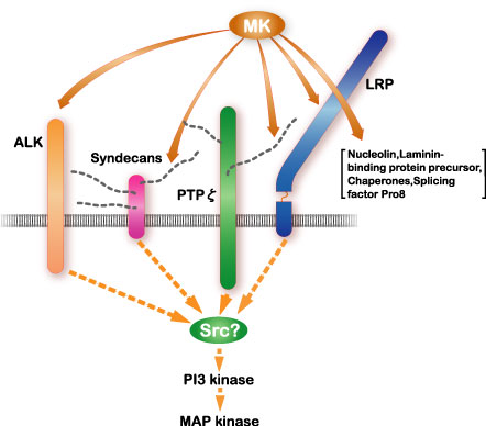 receptor complex of midkine (MK) and the downstream signaling system. Cited from