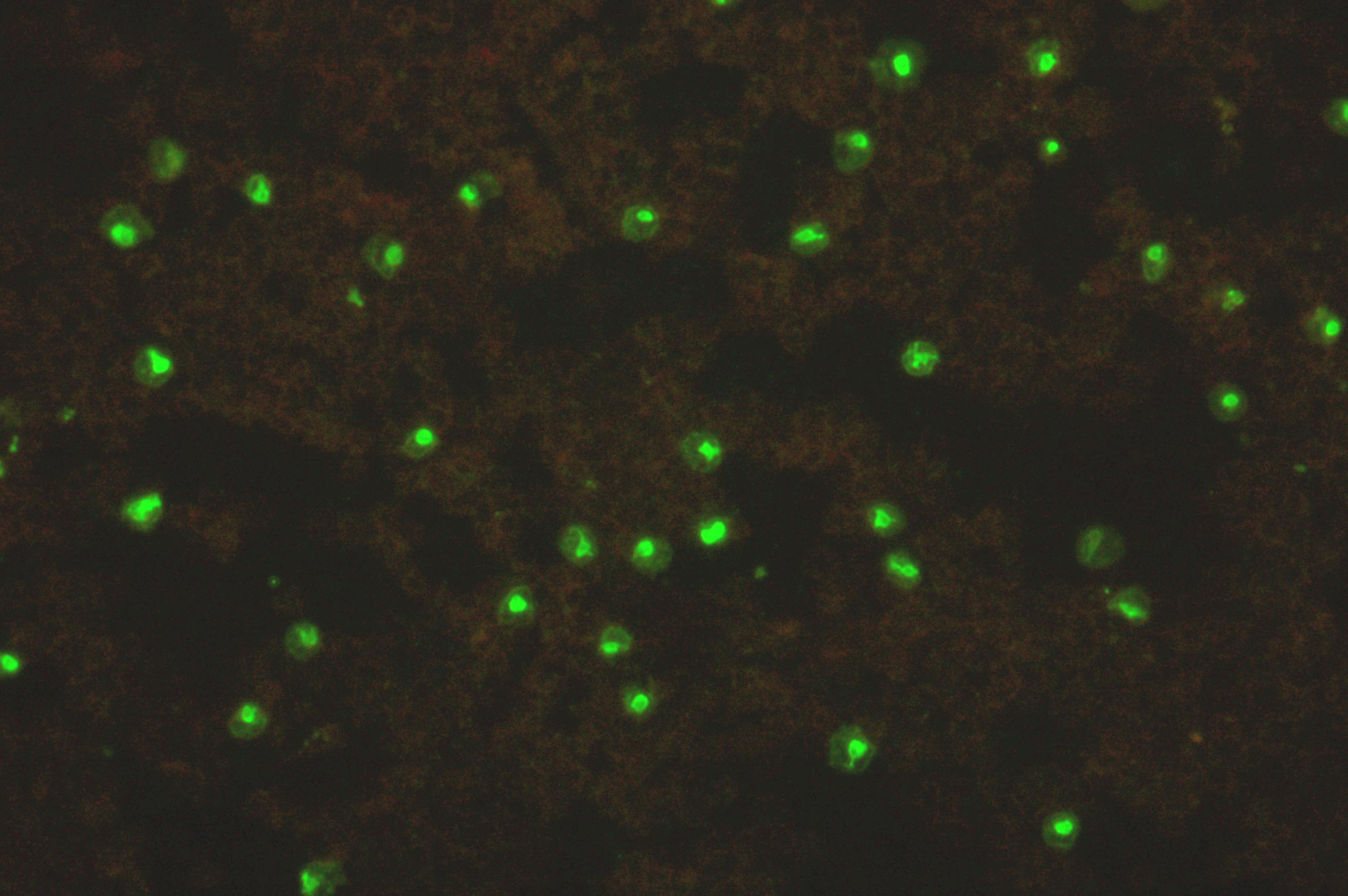 Babesia bovis and Babesia bigemina are obligate intra-erythrocytic tick-borne protozoans causing bovine piroplasmosis. Cattle who survive the initial fever, anemia and icterus become lifelong carriers. Detection of this carrier state is also of major economic importance. Substrate Slides are prepared with infected bovine erythrocytes, where the merozoites are visible as compact inclusions by IFA staining.